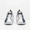 Estética: Una versión refrescante de un clásico de los 90. Presenta una base de cuero blanco impecable resaltada por detalles en naranja “Citrus” y contrastes en gris y negro.