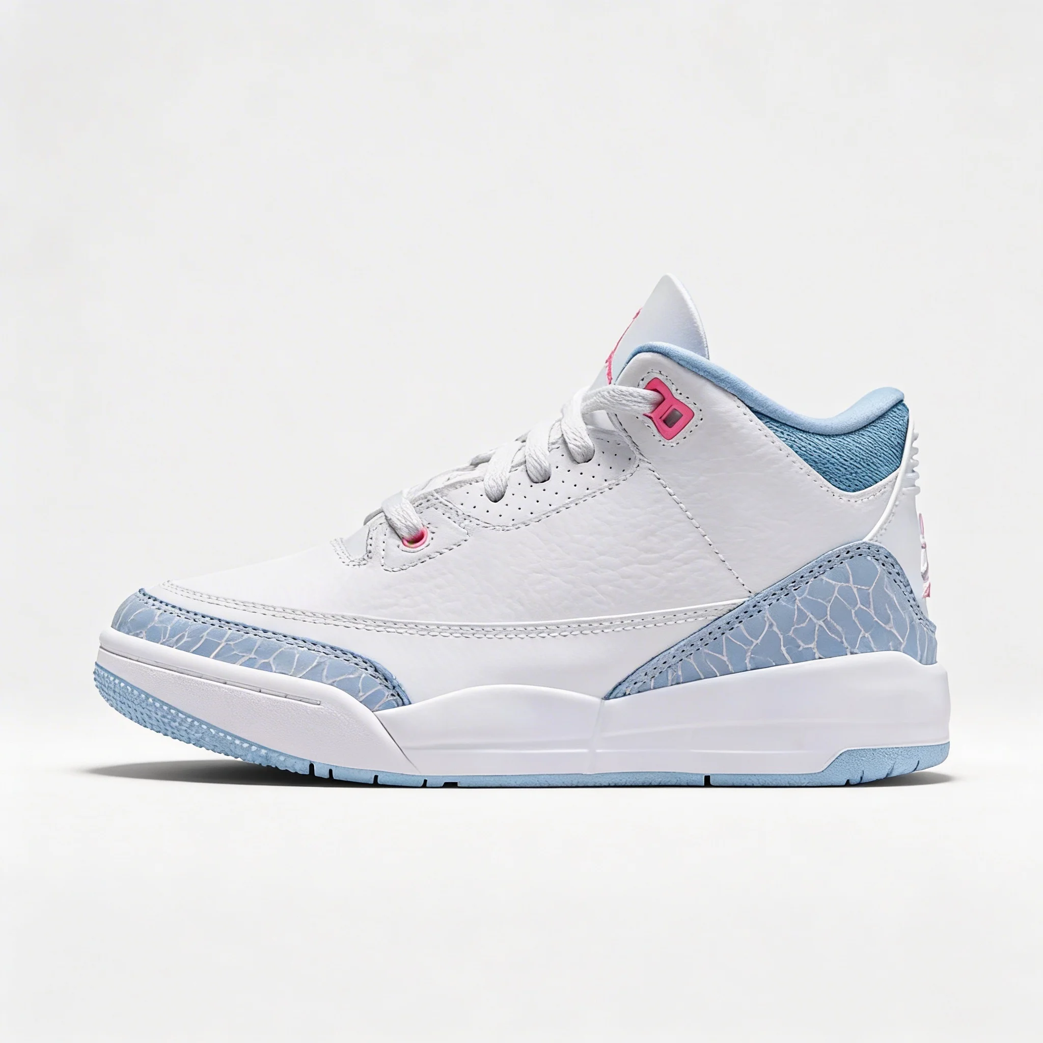 La combinación de tonos blancos con detalles en azul y acentos rosados aporta un estilo fresco, moderno y llamativo, perfecto tanto para outfits urbanos como casuales. Fieles al legado de Michael Jordan, las Air Jordan 3 Retro representan innovación, exclusividad y un estatus icónico dentro de la cultura sneaker.